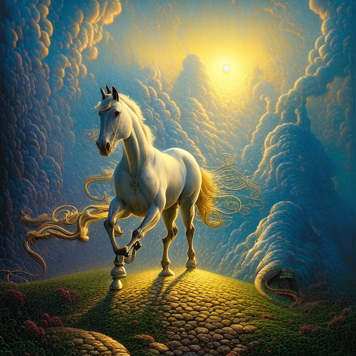 Cabllo blanco con collar, trotando
